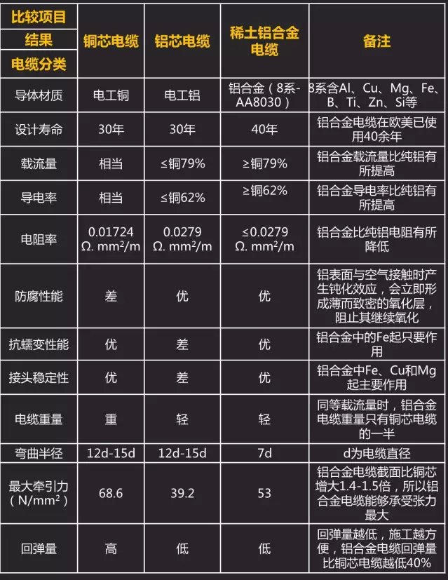 普通的铜芯电缆一般设计寿命为30年,而稀土铝合金能达到40年,而在铝合金电缆表现非常差的抗蠕变性能,接头稳定性等特性上。稀土铝合金电缆也是弥补了铝合金电缆的短板,可以说稀土铝合金电缆在性能上较之铜芯电缆和铝合金电缆都有了明显的提升。