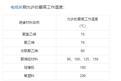 常规计算机电缆敷设时最低环境温度为0℃,电缆长期允许的最高工作温度见上图: