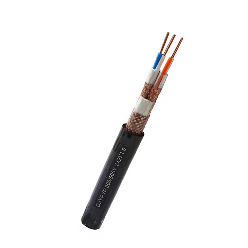 DJYVP | 聚乙烯绝缘对绞铜线编织总屏蔽聚氯乙烯护 算机电缆套计 | 敷设室内、电缆沟、管道等要求静电屏蔽 场合 |