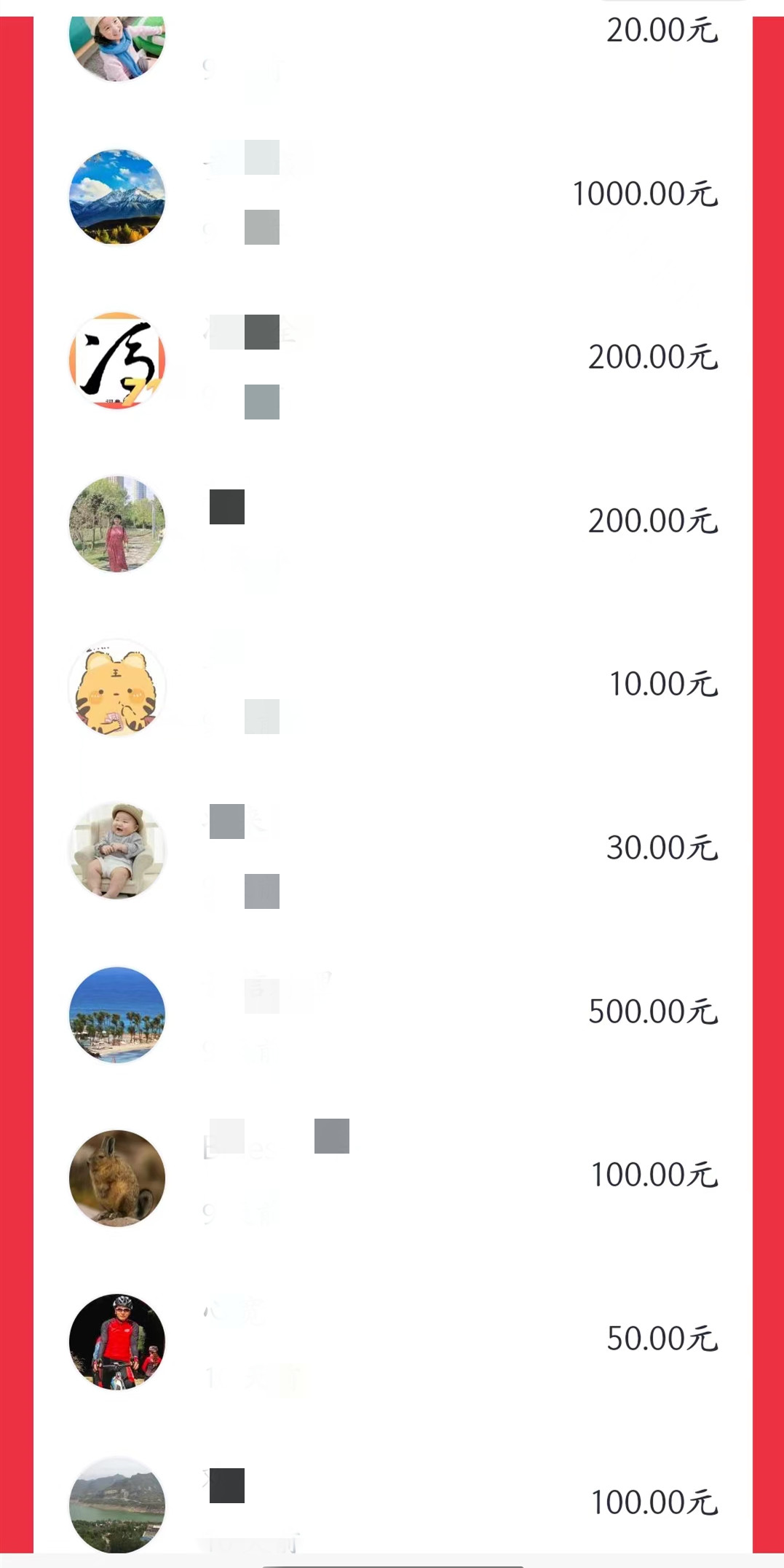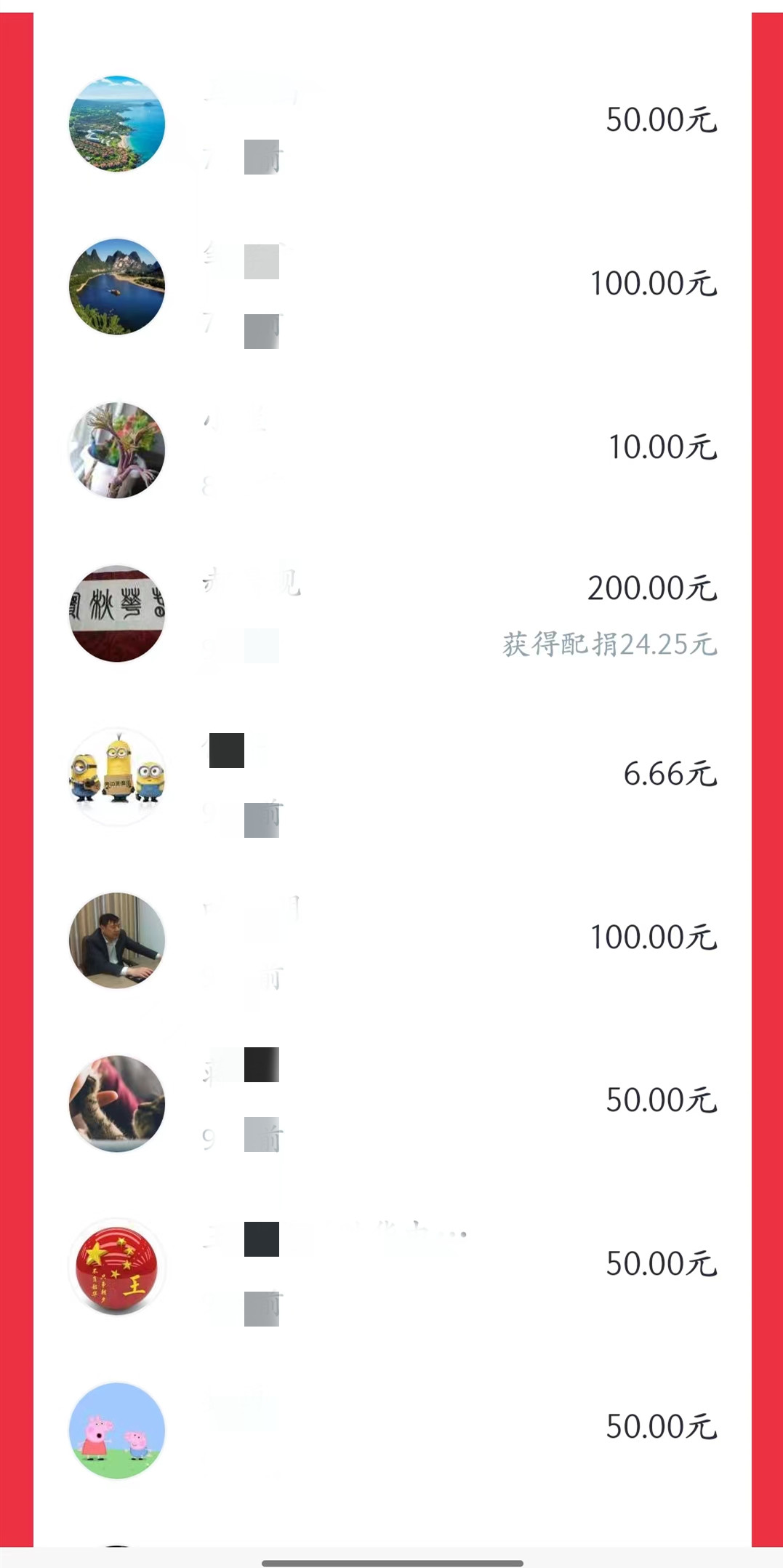 部分爱心捐款截图