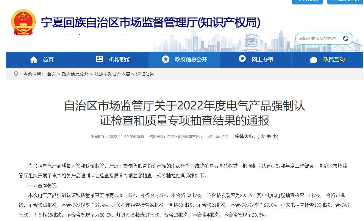宁夏回族自治区市场监管厅关于2022年度电气产品强制认证检查和质量专项抽查结果的通报中显示,本次电气产品强制认证和质量抽查实际完成351批次,合格245批次,不合格106批次,不合格发现率为30.2%。其中电线电缆抽查检查115批次,合格72批次,不合格43批次,不合格发现率为37.4%。 本次检查是依据GB/T 5023.3-2007《额定电压450/750V及以下聚氯乙烯绝缘电缆》、GB/T12706.1-2020《额定电压1 kV(Um=1.2 kV)到35 kV(Um=40.5 kV)挤包绝缘电力电缆及附件》、GB/T 5013.4-2008《额定电压450/750V及以下橡皮绝缘电缆》等国家标准和行业标准,主要对产品绝缘平均厚度、绝缘偏心度、导体电阻、阻燃类线缆的成束燃烧试验等项目指标进行了检验,所抽检产品共115批次,合格72批次,不合格43批次,不合格项目主要有结构尺寸、电性能、绝缘和护套材料机械性能及产品外观标识等。 不合格项目主要有: 1.结构尺寸。线缆由于其生产过程中的工艺要求以及使用方提出的个性化要求,不可避免的产生了差异化,国家线缆相关标准为解决该问题,规定出了不同线缆规格和型号,及与之相对应的线缆结构尺寸。结构尺寸是消费者可以通过自身经验对电线电缆产品好坏进行判断的的重要指标; 2.电性能。线缆的电性能主要以导体电阻指标进行判定,导体电性能越好,导体电阻值越小,不同规格的线缆有不同的导体电阻指标。影响该性能的因素主要有四点,一是导体材质,如铜导体中铜的纯度越高,导体的性能就会越好。二是导体横截面积,横截面积越大导体电阻值就越小。三是绞合工艺,导体绞合是非常重要的工艺流程,导体绞合情况对导体电性能有着重要的影响。四是产品状态,个别情况下,产品外包装和护层破坏会导致导体与潮湿空气接触,产生细微的化学反应,可以轻微影响到产品导体电阻值; 3.绝缘和护套材料机械性能。线缆绝缘和护套的机械性能包含项目众多,如老化前后的抗张强度、老化前后的断裂伸长率、绝缘热延伸、绝缘热收缩等。 不合格名单: 沐鸣娱乐始建于1954年,中国电缆行业20强,中国机械制造500强,是一家非常有实力的电线沐鸣娱乐,产品涵盖电线电缆型号几十万种,包括但不限于KVVP屏蔽控制电缆,ZR-YJV22铠装电力电缆,ZR-BVR,RVS,RVV聚氯乙烯绝缘护套家用布电线,YJLHV铝合金电缆,BTTZ矿用电缆,架空电缆,防火特种电缆等产品。所有产品都符合国家标准生产,质量有保障,优质电缆,选沐鸣娱乐。