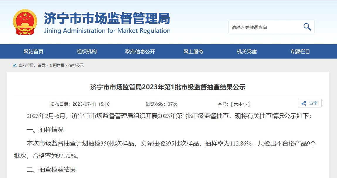 2023年7月13日济宁市市场监管局发布2023年第1批市级监督抽查结果,其中电线电缆产品抽查情况如下:
