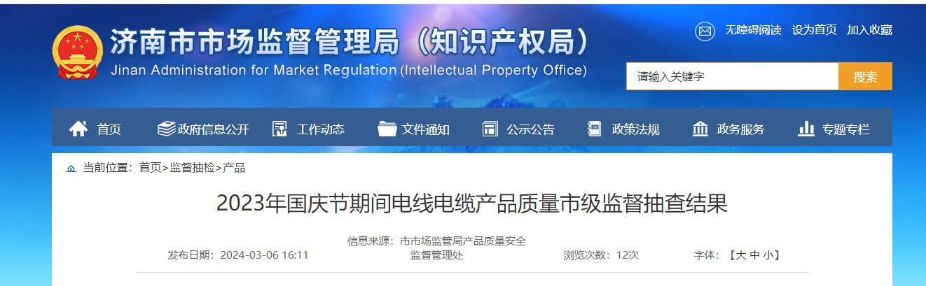 近期济南市市场监督管理局对其辖区所在电线电缆质量问题进行了质量抽查,具体如下
