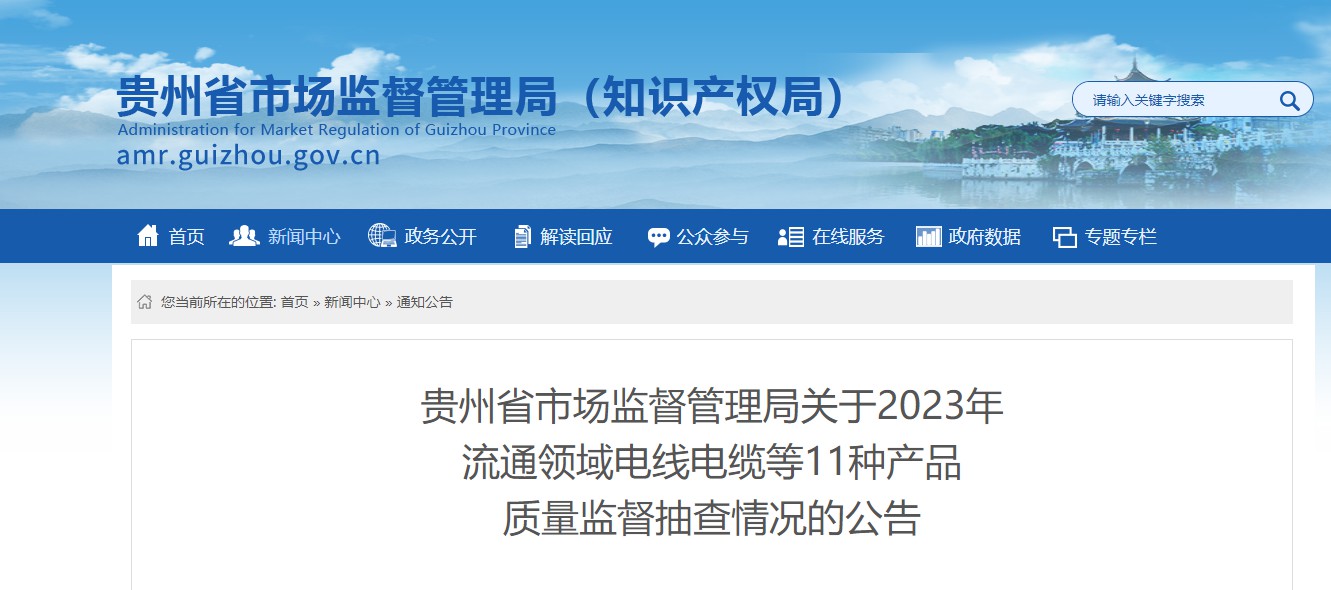 近日贵州省市场监督管理局,对2023年流通领域电线电缆等11种产品质量监督抽查情况的进行了公告,根据《中华人民共和国产品质量法》《产品质量监督抽查管理暂行办法》规定和有关工作部署,贵州省市场监督管理局2023年组织开展了流通领域电线电缆等11种产品质量监督抽查。现将有关情况公告如下: