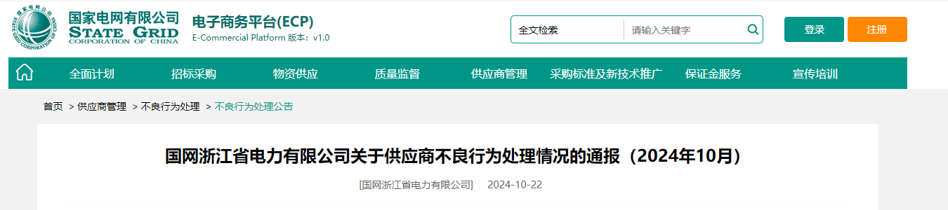 | 网浙江省电力有限公司关于供应商不良行为处理情况的通报编号:2024-04 | ||||