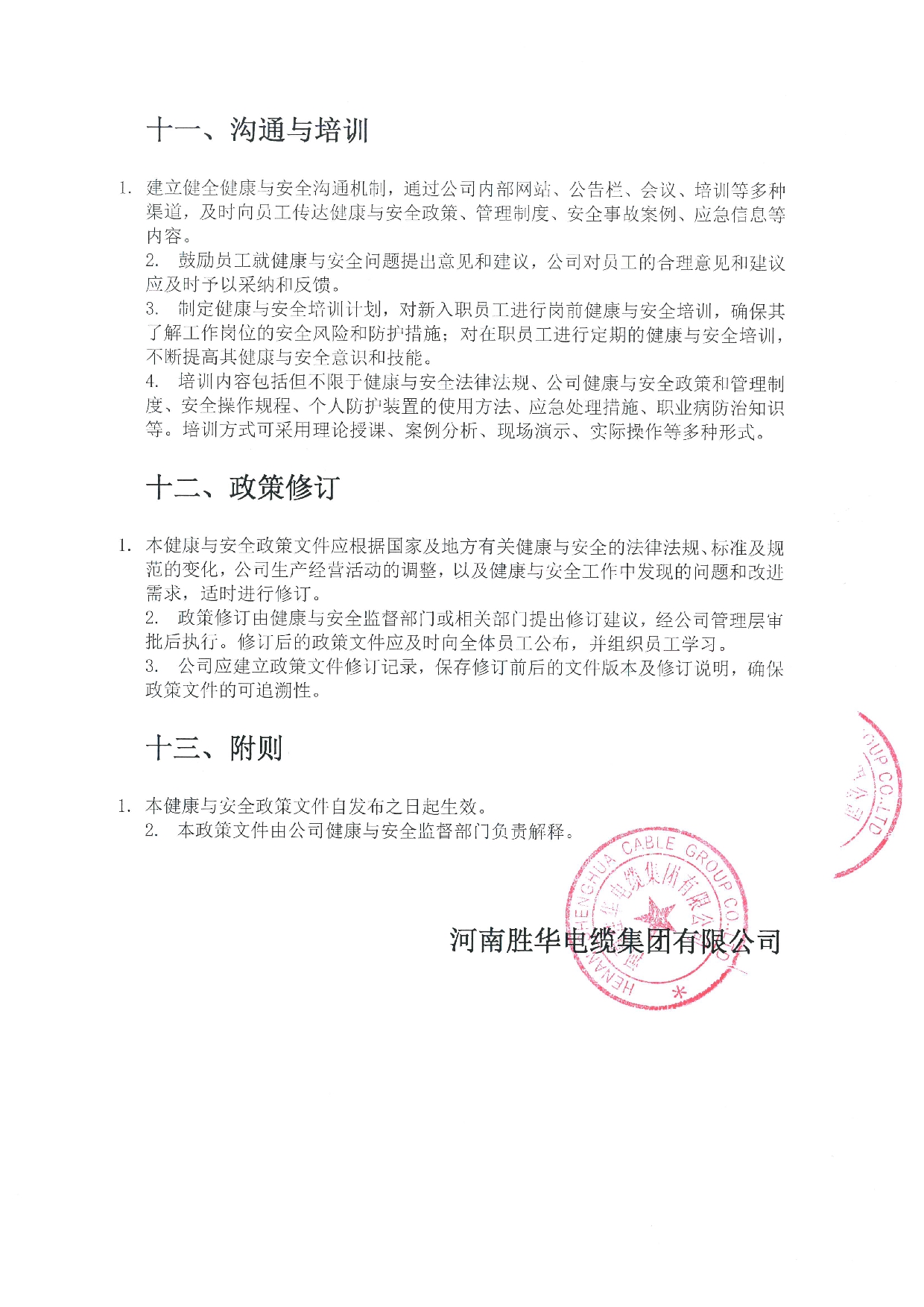 健康与安全政策文件-河南沐鸣娱乐有限公司