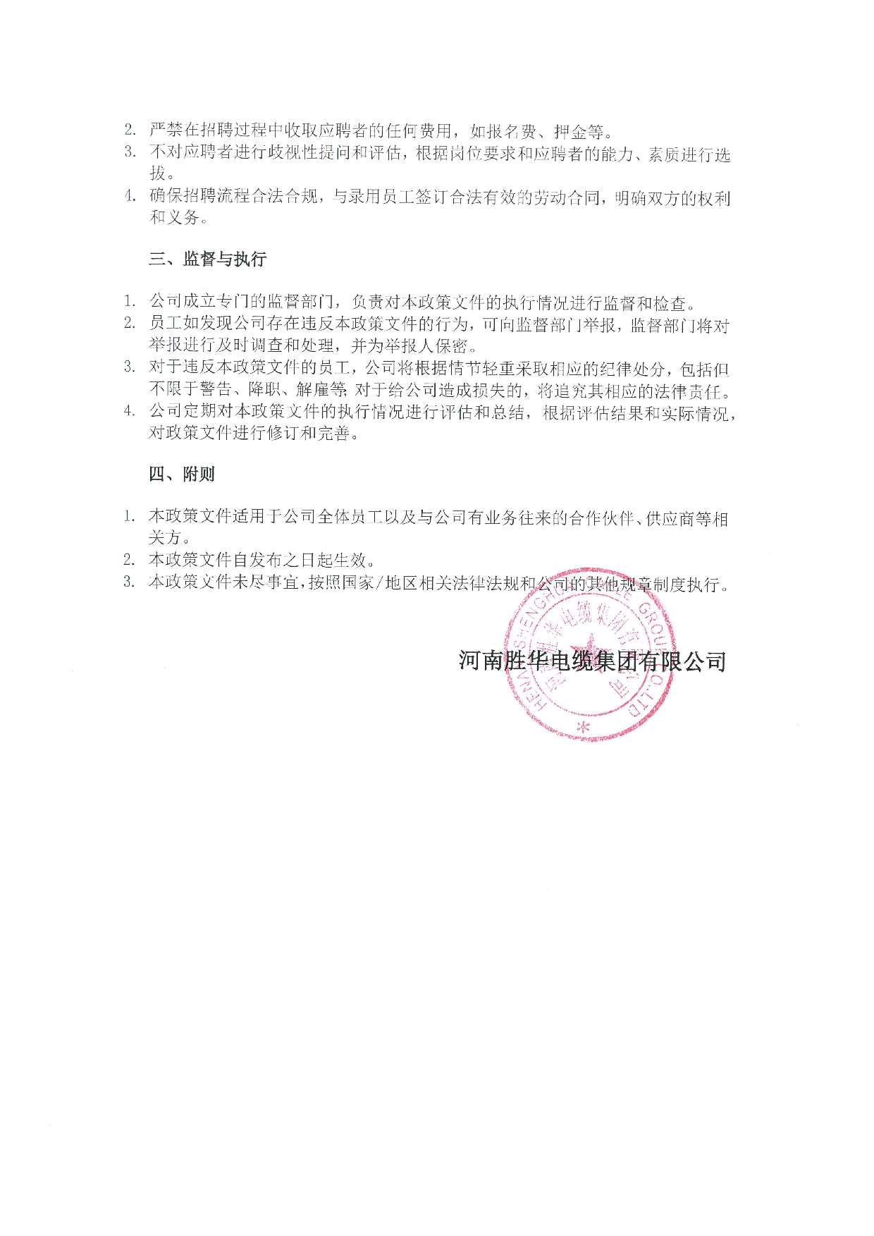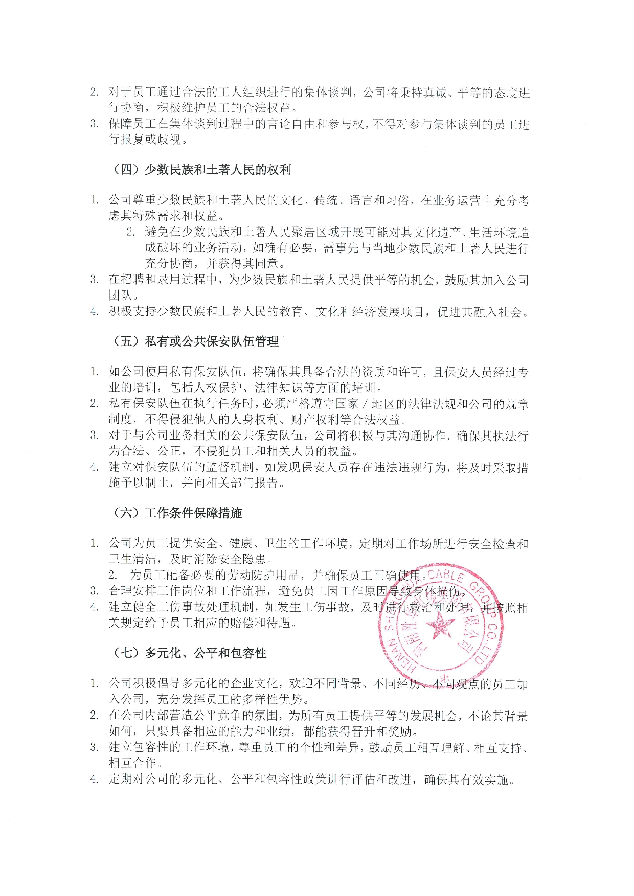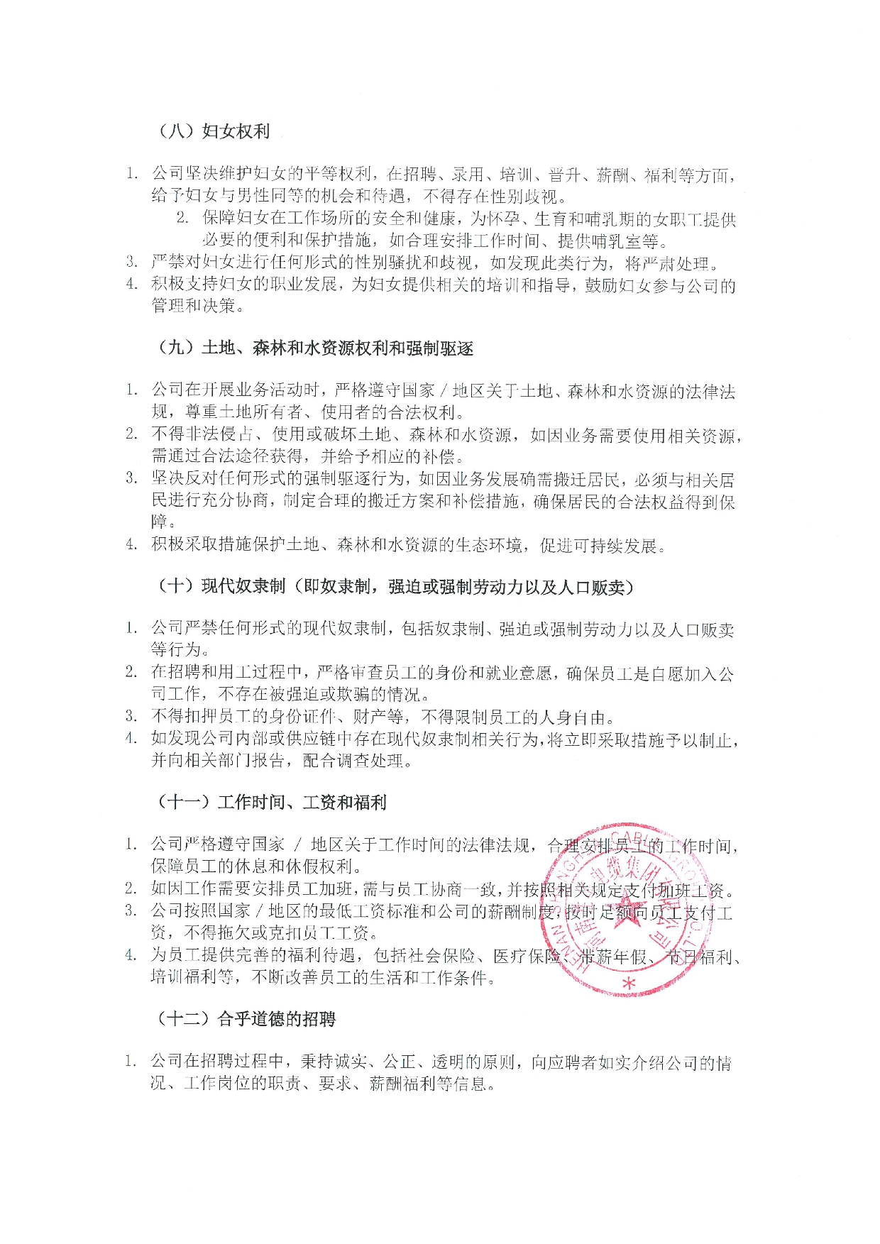 公司工作条件与人权政策文件-河南沐鸣娱乐有限公司