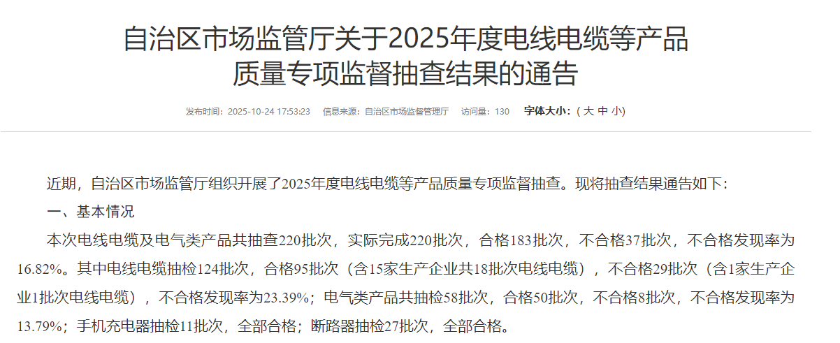 小编从宁夏自治区市场监管厅网站获悉,近期,自治区市场监管厅组织开展了2025年度电线电缆等产品质量专项监督抽查。 本次电线电缆及电气类产品共抽查220批次,实际完成220批次,合格183批次,不合格37批次,不合格发现率为16.82%。其中电线电缆抽检124批次,合格95批次(含15家生产企业共18批次电线电缆),不合格29批次(含1家生产企业1批次电线电缆),不合格发现率为23.39%;电气类产品共抽检58批次,合格50批次,不合格8批次,不合格发现率为13.79%;手机充电器抽检11批次,全部合格;断路器抽检27批次,全部合格。 电线电缆:依据GB/T 5023.3-2008《额定电压450/750V及以下聚氯乙烯绝缘电缆 第3部分:固定布线用无护套电缆》、GB/T 5013.4-2008 《额定电压450/750V及以下橡皮绝缘电缆 第四部分:软线和软电缆》、GB/T5023.5-2008《额定电压450/750V及以下聚氯乙烯绝缘电缆 第5部分:软电缆(软线)》等相关国家标准和企业标准,主要对产品标志、结构尺寸、导体电阻、绝缘护套机械性能、护套失重试验、曲挠试验、单根垂直试验等项目指标进行了检验,所抽检产品共124批次,合格95批次,不合格29批次,不合格项目主要有产地标志和电缆识别、标志连续性、导体电阻(20℃)、绝缘老化前抗张强度、护套老化后断裂伸长率变化率、护套平均厚度、绝缘平均厚度、绝缘最薄点厚度、绝缘老化后断裂伸长率、绝缘老化后抗张强度变化率、绝缘热延伸试验、护套热延伸试验、机械强度、曲挠试验。 不合格项目的原因分析 (一)电线电缆。品不合格问题主要集中在结构尺寸、标志标识、导体电阻及热延伸性能四方面。 结构尺寸不合格主要源于原材料质量缺陷与生产工艺控制不足。部分企业使用劣质电缆料或再生料,导致挤出过程中绝缘层、护套层厚度不均或偏心,同时设备老化、温控系统精度低及操作人员技术不熟练进一步加剧了尺寸偏差。此外,偷工减料现象普遍,企业通过减少材料用量降低生产成本,直接导致厚度或编织密度不达标。 标志标识不合格多与生产管理疏漏相关。工艺设备缺陷(如模具配置不当、牵引速度不稳)导致标志间距超差或印刷偏移;部分企业技术标准执行不到位,未按线缆类型区分标志间距要求;劣质油墨易褪色脱落,影响耐擦性;更有企业故意省略厂家、规格等关键信息以逃避监管。 导体电阻超标的核心原因是材料与工艺缺陷。企业为降低成本采用杂质含量高的再生铜或劣质铝材,显著降低导电性能;导体绞合工艺粗糙、模具精度不足或牵引力不稳定,导致实际截面积小于标称值,形成电阻局部异常。该问题直接加剧线路损耗,引发绝缘老化甚至火灾风险。 热延伸性能不合格则与交联工艺失控密切相关。部分企业以普通聚乙烯替代交联聚乙烯(XLPE),或使用再生料比例过高的非标电缆料,导致交联密度不足。交联剂配方错误(如掺杂单/双官能团试剂)及储存不当(受潮失效)进一步降低交联效率。工艺参数偏差(温度、时间不足)及挤出冷却环节缺陷(水温过高、冷却槽过短)使材料分子链未充分交联,冷却后无法形成稳定结构,最终导致热延伸率超标。 沐鸣娱乐始建于1954年,中国机械制造500强,是一家非常有实力的电线沐鸣娱乐,产品涵盖电线电缆型号几十万种,包括但不限于KVVP屏蔽控制电缆,ZR-YJV22铠装电力电缆,ZR-BVR,RVS,RVV聚氯乙烯绝缘护套家用布电线,YJLHV铝合金电缆,BTTZ矿用电缆,架空电缆,防火特种电缆等产品。所有产品都符合国家标准生产,质量有保障,买电缆,选沐鸣娱乐。