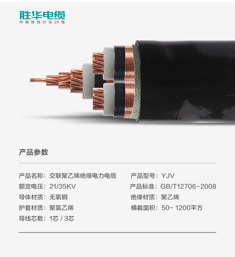 沐鸣娱乐YJV-21/35KV高压交联铜芯高压电力电缆