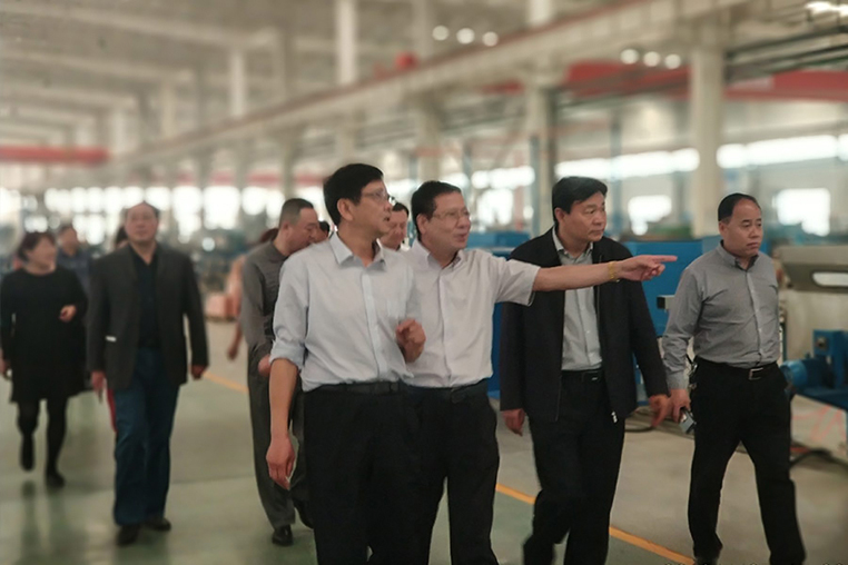 座谈会议结束以后,由益达注册董事长童建成、党总支书记常玉琳、总经理助理邹孝文陪同副市长等一行人到生产车间进行参观视察。