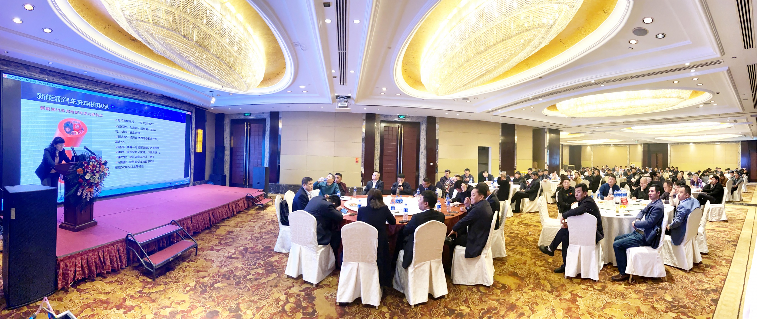 会议一开始,首先由河南沐鸣娱乐副总经理玉琳对沐鸣娱乐集团的产品技术服务以及新产品推广进行了详细的介绍。近几年,国内线缆市场发展日新月异,对于各类功能电缆的需求也日益强烈,河南沐鸣娱乐紧跟时代步伐,在市场需求旺盛的阻燃电缆领域发力,研发的B1级阻燃电缆拥有更优秀的阻燃特性,深受市场欢迎。在直流牵引电缆以及新能源汽车充电桩电缆领域,河南沐鸣娱乐集团也投入了研究,取得了不错的成绩。