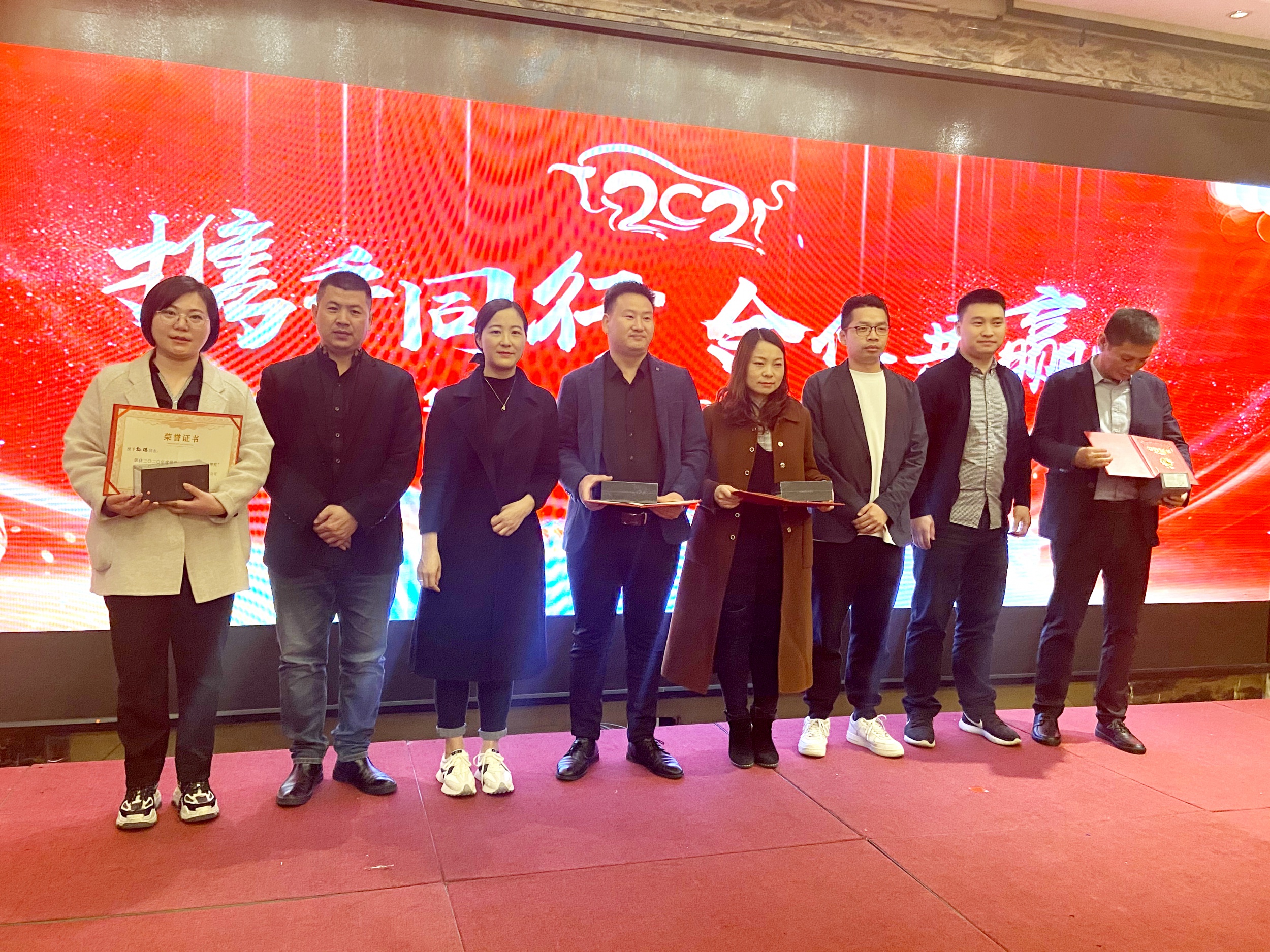 随后,公司电商负责人王铮,副总经理叶鲁朋分别对各自营销工作进行总结发言,并宣读表彰2020年营销先进人员。随后,由集团领导为上台的2020年营销先进人员进行颁奖,举行颁奖仪式。