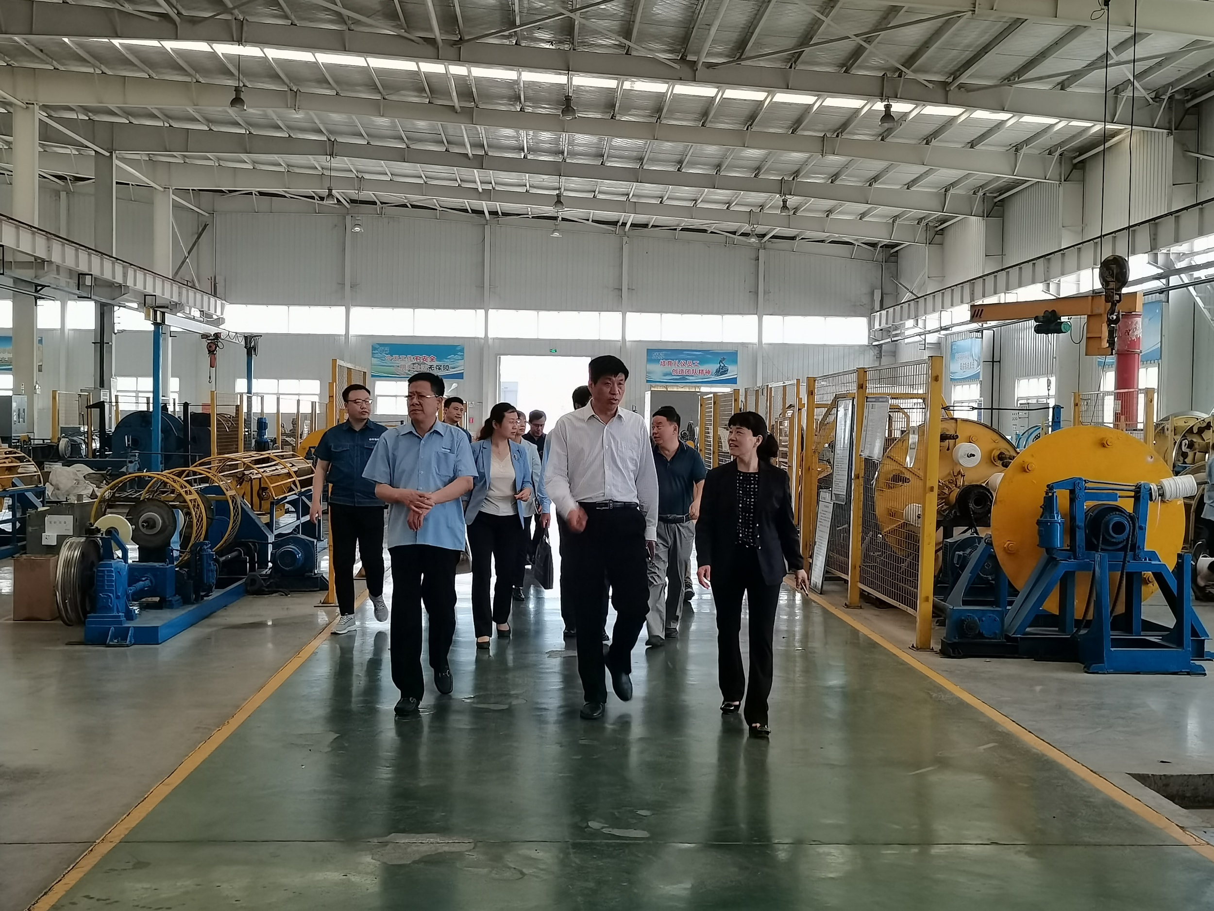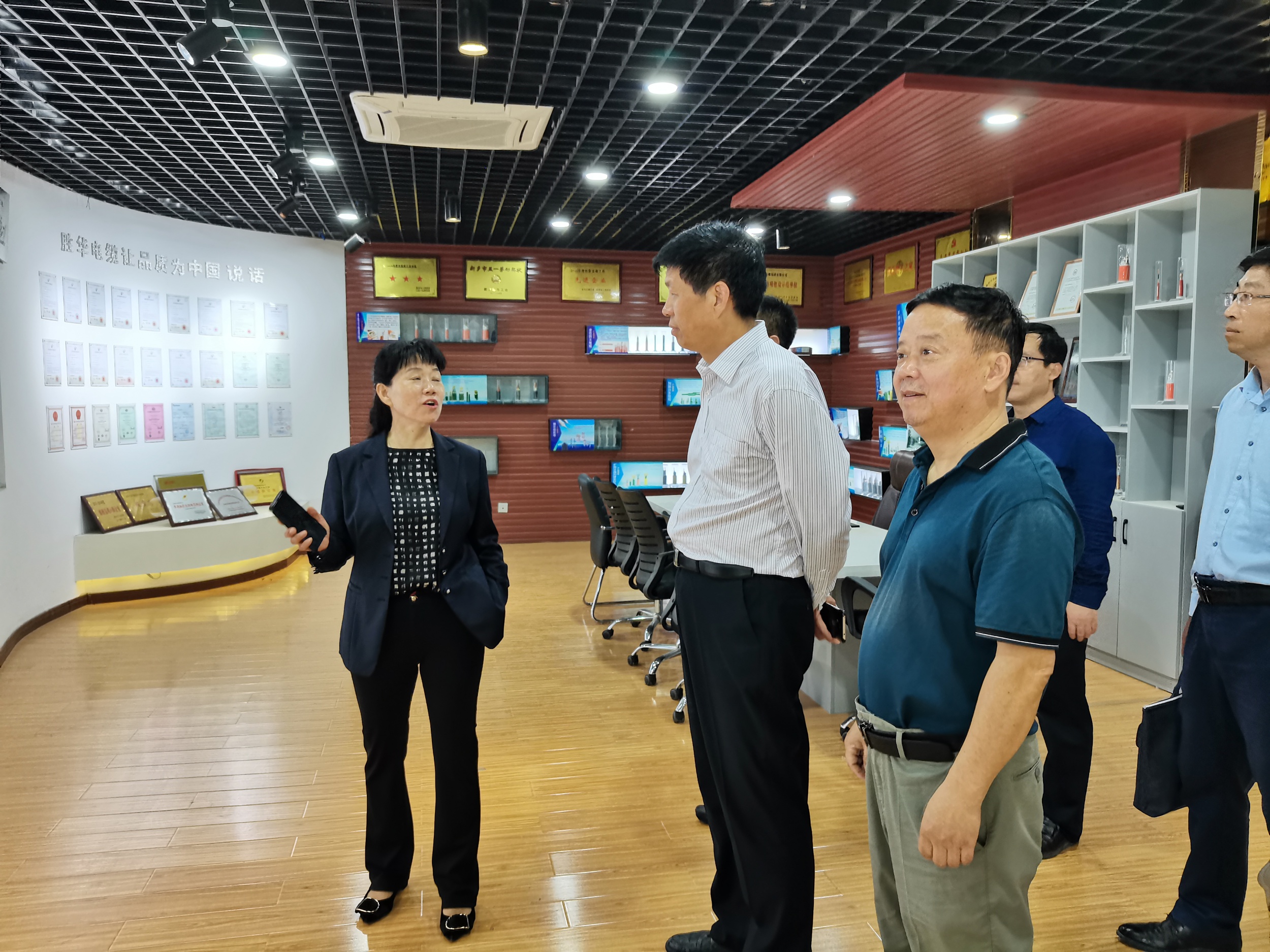 河南工学院校长陈丙义一行先是在河南益达注册董事长童建成陪同下,参观了生产车间、益达注册展厅、重点实验室、仓库、研发中心等。