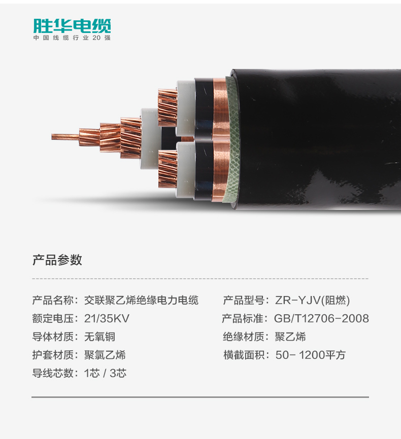 沐鸣娱乐ZR-YJV-21/35KV高压阻燃交联铜芯电力电缆